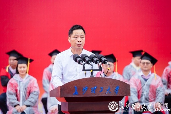 毕业生家长代表、物电学院电信2102班吴博凯同学的父亲动情讲述孩子在长理的蜕变,并代表全体家长向学校致谢,鼓励毕业生勇敢奔赴属于自己的星辰大海。