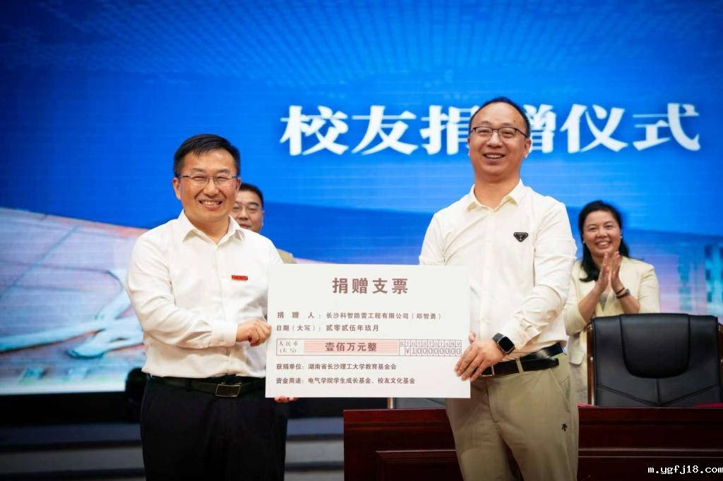 9月23日,电气与信息工程学院1999届校友、长沙科智防雷工程有限公司董事长兼总经理郑智勇捐赠仪式在2025级新生“电苑第一课”现场举行。副校长张军辉出席并讲话,校友中心、教育基金会、学工部、校团委、电气学院等相关单位负责人参加。张军辉代表学校向郑智勇先生致以感谢。他表示,“校友的成就,是母校最骄傲的名片;校友的回馈,是对教育最深情的反哺。”他鼓励全体新生以优秀校友为榜样,珍惜韶华、锤炼本领,成长为具有...